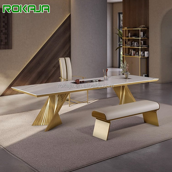 Tables à thé de luxe personnalisées en plaque de roche pieds en acier inoxydable doré Tables basses modernes à la mode mobilier de bureau durable