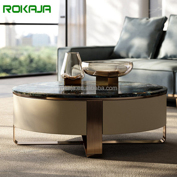 Table basse en marbre de luxe personnalisée incrustation de cadre en acier inoxydable table à thé ronde design mobilier de salon table de centre de maison